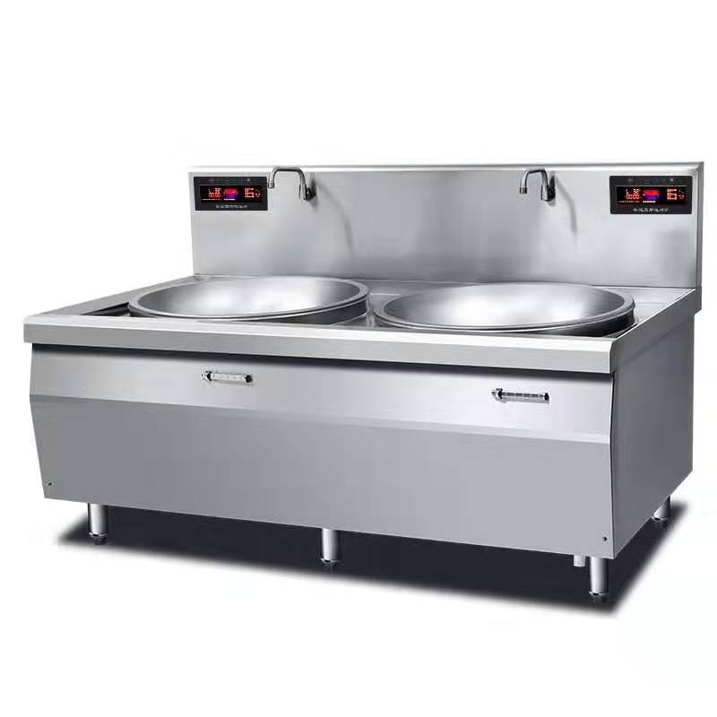 用料:爐麵采用1.2mm, ZVBX側板1.0mm優質不鏽鋼板製成。機芯采用德國原裝西門子IGBT,韓國三星控製芯片,日本阿爾卑斯編碼器調節功率。優秀電磁加熱技術,微電腦智能全自動監控,具有超溫保護、自動故障檢測,故障報警顯示,及缺相保護等安全裝置,旋鈕或磁力開關控製。優質元件機芯,防蛀、防油煙,升溫快,熱效率達95%以上,配搖擺水龍頭2個,配專用鍋2個。